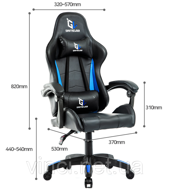Ігрові крісла GAMELAB — це спортивні сидіння з плавно регульованою спинкою та подушками. Бренд Gamelab характеризується високою якістю матеріалів, які застосовуються для виробництва цих часом енергійно і довго використовуваних крісел. Грати годинами на цьому кріслі – справжнє задоволення, а додаткові подушки для підтримки голови та попереку лише підсилюють відчуття високого комфорту. Ідеально підходить для геймерів, а також для людей, які проводять багато годин за комп'ютером або письмовим столом.